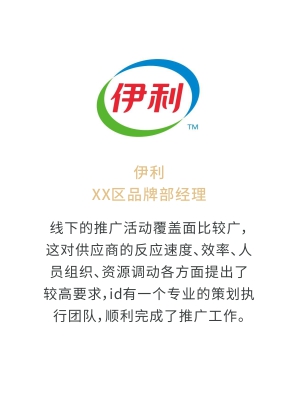 i-d先后經(jīng)歷與Audi、Mercedes-Benz、infiniti、PORSCHE、可口可樂、麥當(dāng)勞、肯德基、Budweiser、華為、小米、中國移動(dòng)、ELLE、L'OREAL、萬達(dá)、仁恒置地、恒大、碧桂園、蘭桂坊...的業(yè)務(wù)合作,成功地將國際化的營銷策劃理念及執(zhí)行方式融入本土,為更多的中國企業(yè)開啟全新的品牌推廣思路和執(zhí)行方案。